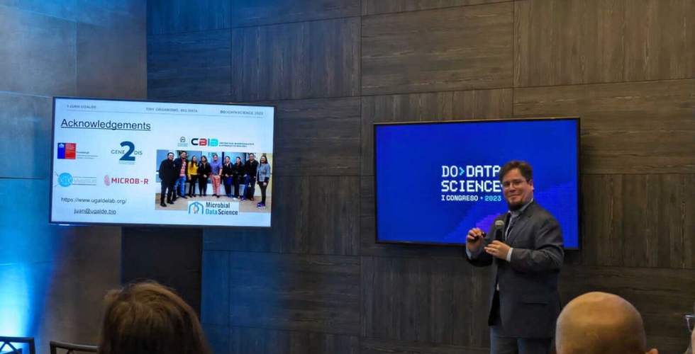 Juan A. Ugalde, Investigador Principal realizó la ponencia. En tanto, Ignacio Ramos-Tapia, Investigador Postdoctoral presentó el poster Phylodinamics Surveillance of SARS-CoV-2 in Chile (2020-2023). Ambos trabajados centrados en el análisis de datos complejos y su aporte a la ciencia. Entre el 8 y 9 de noviembre se llevó a cabo el Primer Congreso de Do Data Science en Chile organizado por Data Obervatory, centro apoyado por ANID, cuyo objetivo fue reunir expertos internacionales en datos, inteligencia artificial y machine learning. El foco estuvo puesto en la aplicación de la ciencia de datos utilizando la información recogida en terreno y cómo el rol colaborativo entre el Estado, la academia y la industria pueden aprovechar las ventajas de Data Science e Inteligencia Artificial.